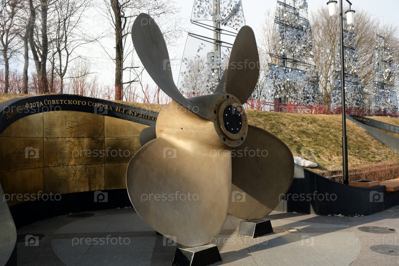 Парк «Остров фортов» в Кронштадте. Аллея героев Российского флота. Памятник. Россия, Кронштад, 29.03.2022