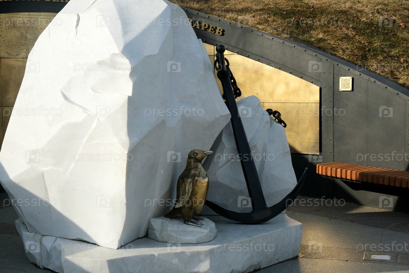 Парк «Остров фортов» в Кронштадте. Аллея героев Российского флота. Памятник. Россия, Кронштад, 29.03.2022