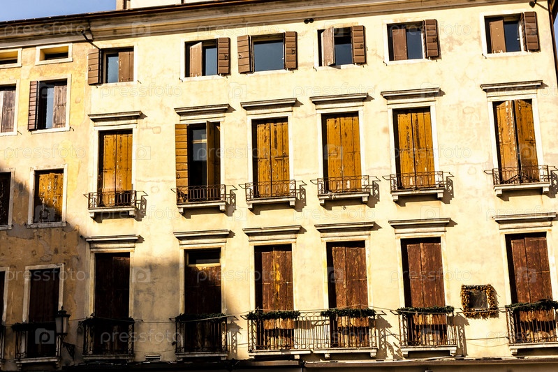 Старомодное традиционное деревянное окно в Венеции, Италия