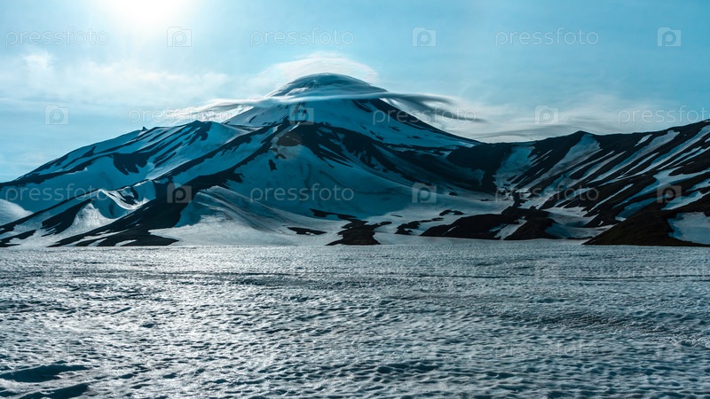 Чечевицеобразные или линзообразные облака над Авачинским вулканом, Камчатка, Россия
