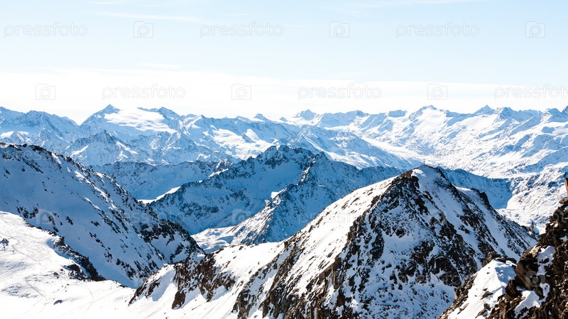 Альпы в зимний день, Австрия, Штубай, горнолыжный курорт Stubaier Gletscher