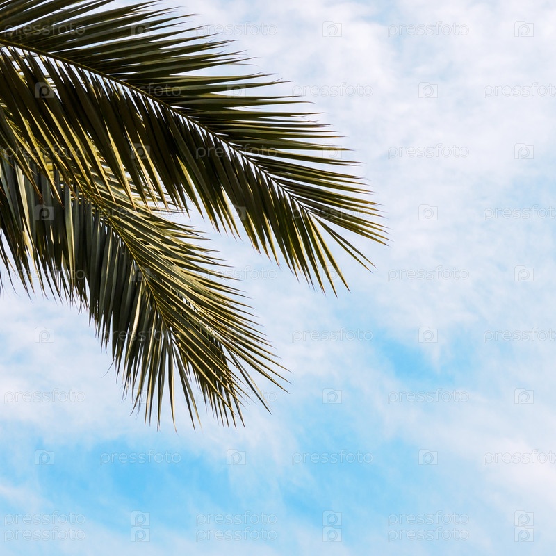 Тропический фон с пальмовыми листьями на фоне неба, цветочный экзотический узор