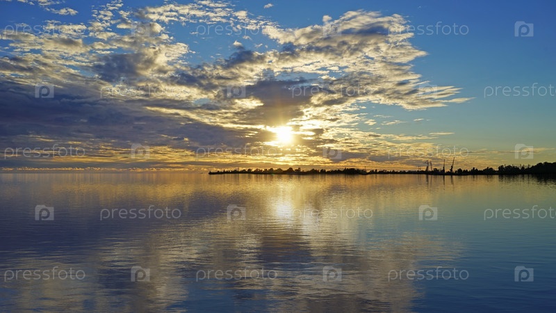 Морской пейзаж с красивым драматическим закатом