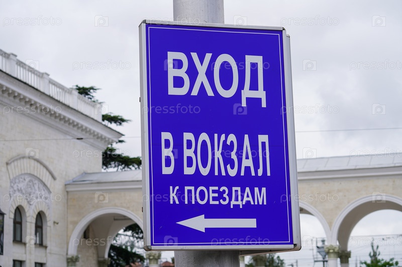 Табличка с надписью вход на вокзал. Симферополь, Крым