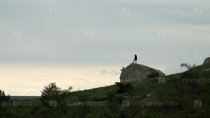 Пейзаж с фигурой человека на большом камне