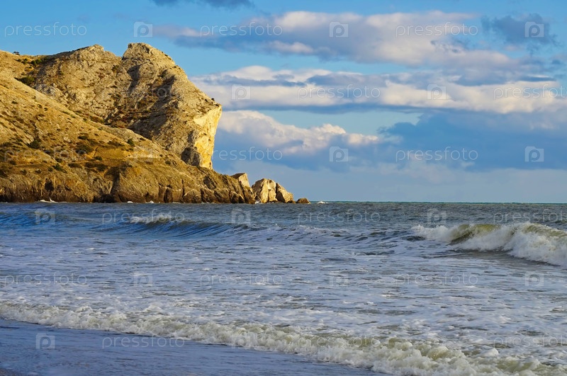 Морской пейзаж с красивыми изумрудными волнами. Судак, Крым