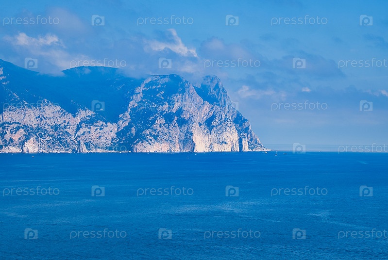 Морской пейзаж с горами на горизонте