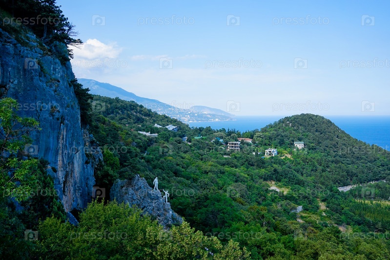 Горный пейзаж с видом на море и гору Аю-Даг в Крыму