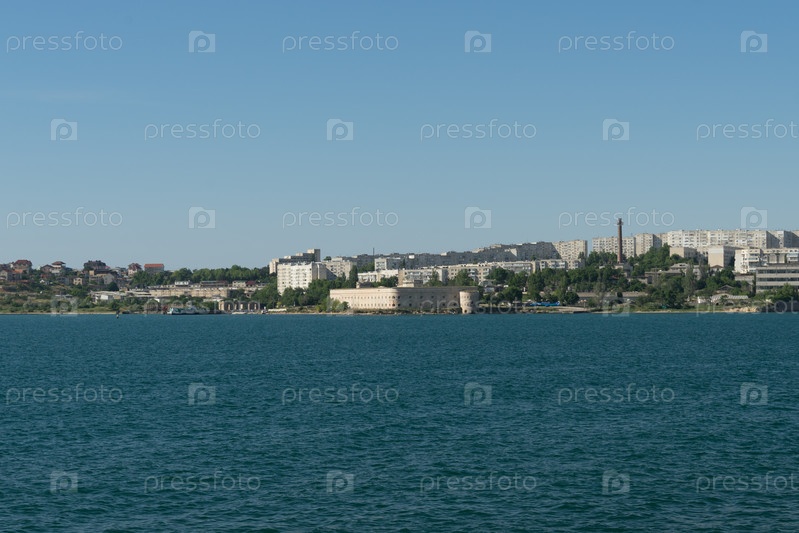 Городской пейзаж с видом на море и достопримечательности
