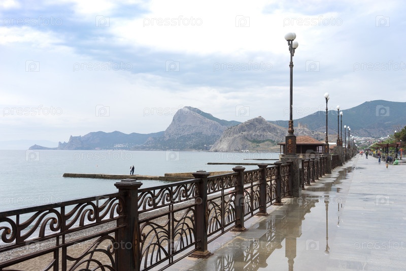 Морской пейзаж с набережной Судака после дождя