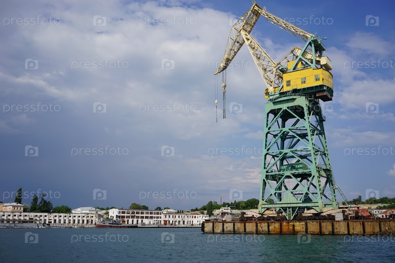 Плавучий кран на фоне морского порта