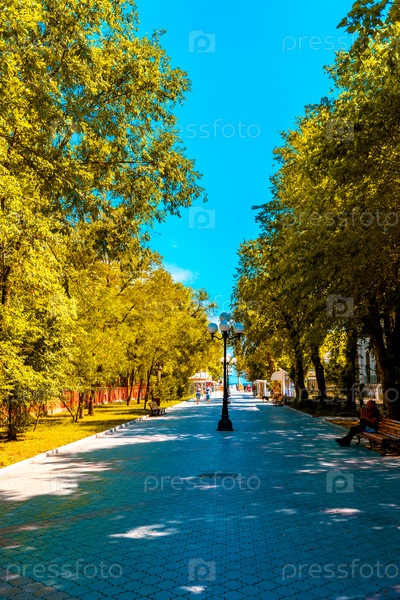 Городской пейзаж курортного города в летний сезон