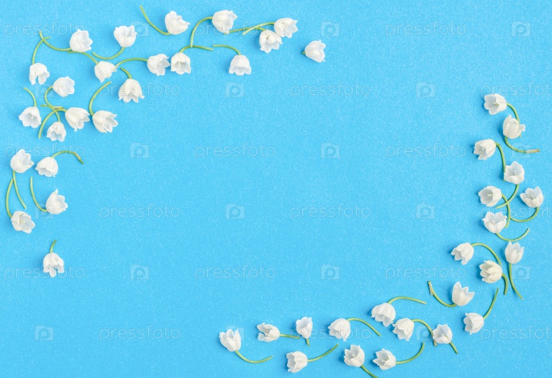 Открытка. Белые цветы ландышей на синем фоне. Концепция праздника