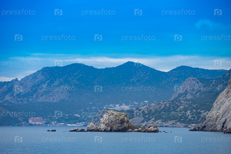 Морской пейзаж с видом на скалы и горы