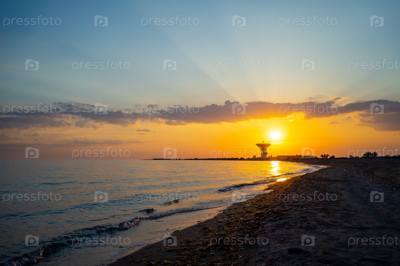 Радиотелескоп Р-2500 РТ-70 на фоне красивого заката