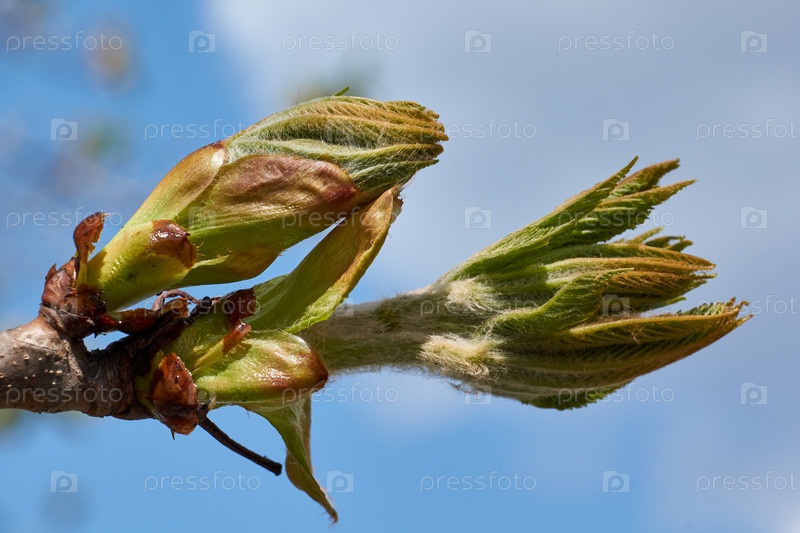 Весна. Бутоны каштана цветут на городской площади