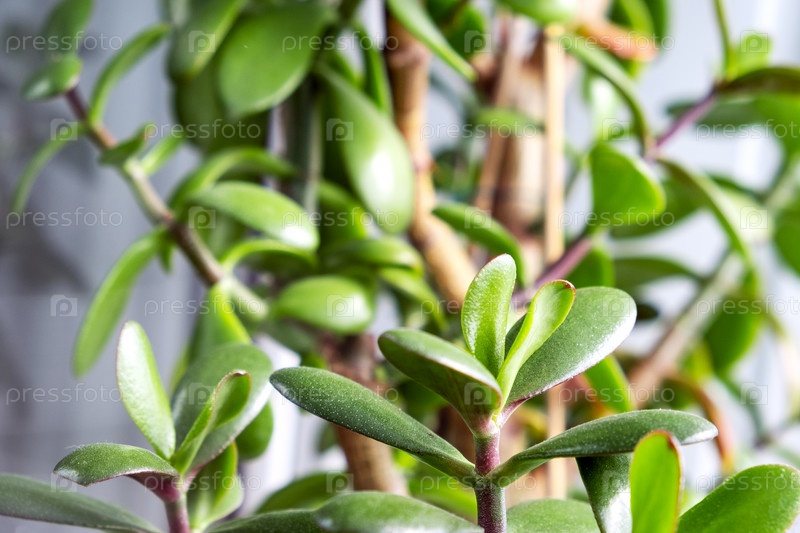Ветви и листья комнатного растения Крассула сочная