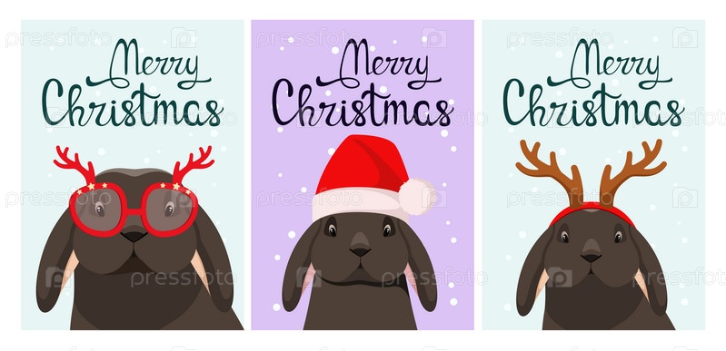 Набор рождественских открыток с милыми черными кроликами