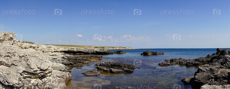 Панорама береговой линии моря со скалами