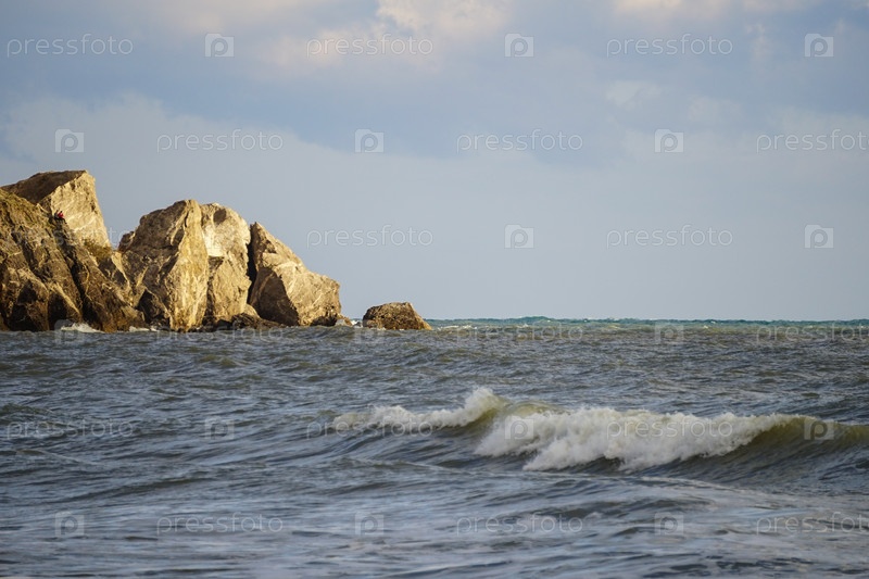Морской пейзаж с красивыми изумрудными волнами. Судак, Крым