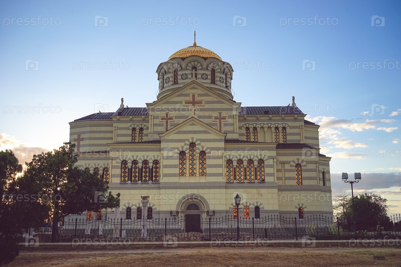 Севастополь, Крым-7 июня 2016 г.: Владимирский собор в Херсонесе - Православная церковь Московского Патриархата на территории Херсонеса Таврического