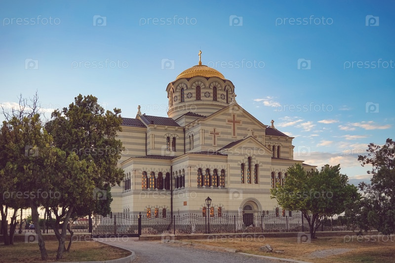 Севастополь, Крым-7 июня 2016 г.: Владимирский собор в Херсонесе - Православная церковь Московского Патриархата на территории Херсонеса Таврического