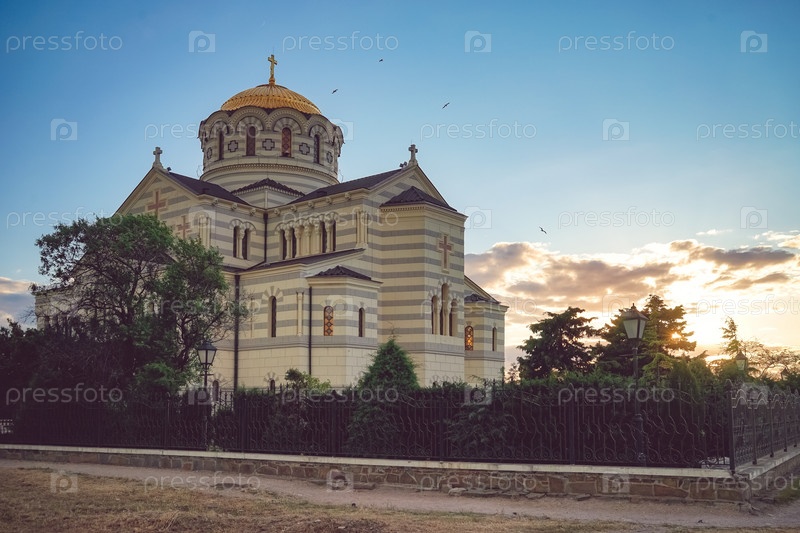 Севастополь, Крым-7 июня 2016 г.: Владимирский собор в Херсонесе - Православная церковь Московского Патриархата на территории Херсонеса Таврического