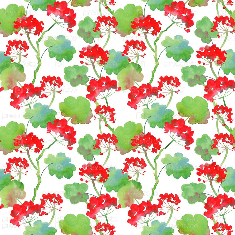 Герань, бесшовный цветочный акварельный паттерн на белом фоне