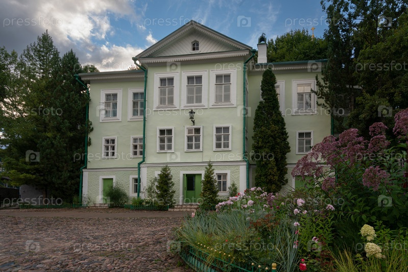 Вид на игуменский дом Свято-Успенского Псково-Печерского монастыря, Печоры, Псковская область, Россия