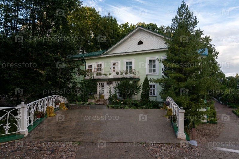 Вид на игуменский дом Свято-Успенского Псково-Печерского монастыря в солнечный летний день, Печоры, Псковская область, Россия