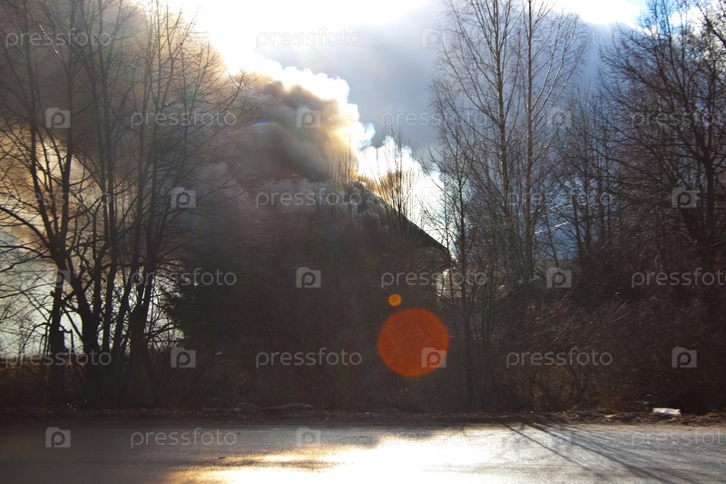 Деревня в Санкт-Петербурге ранней осенью, пожар