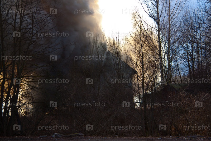 Деревня в Санкт-Петербурге ранней осенью, пожар