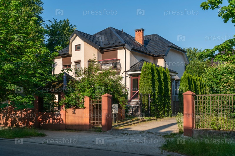 Вид на виллу в историческом районе Амалиенау (бывший престижный пригород Кенигсберга) в солнечный летний день, Калининград, Россия