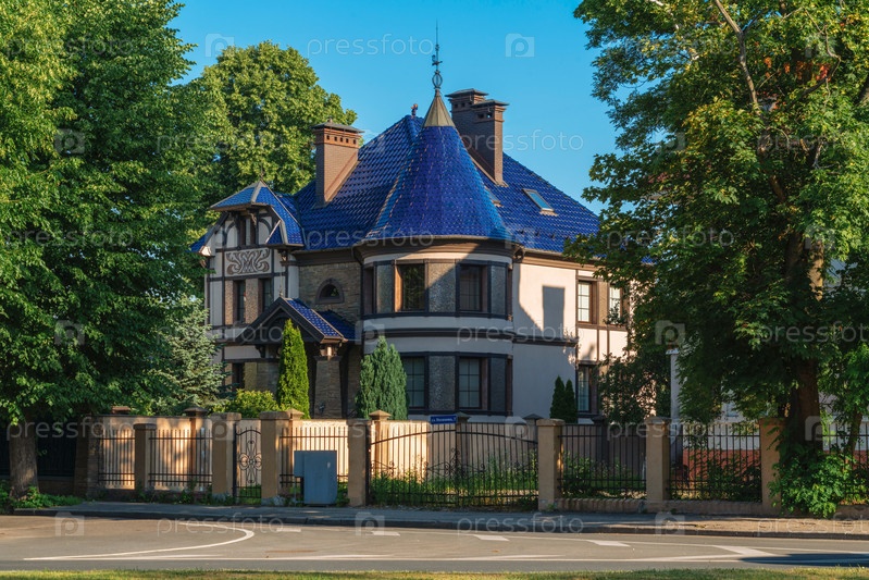 Вид на виллу в историческом районе Амалиенау (бывший престижный пригород Кенигсберга) в солнечный летний день, Калининград, Россия