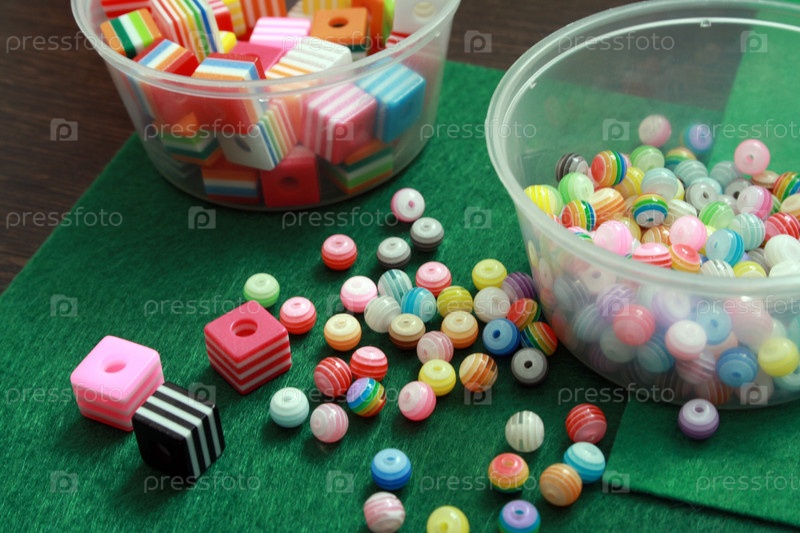 Бусы на зеленом войлочном столике, бусы на зеленом войлочном столике