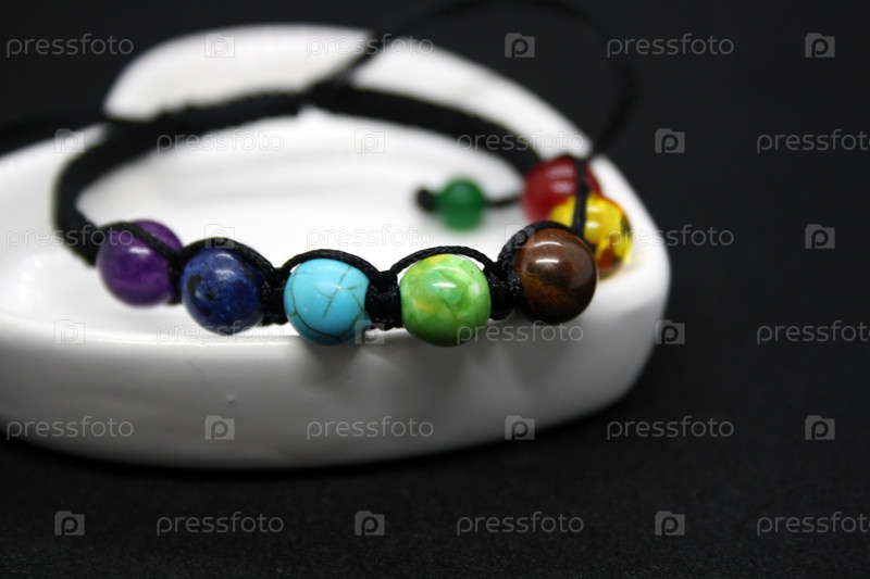 Ювелирные изделия на черном фоне. Браслет из бисера