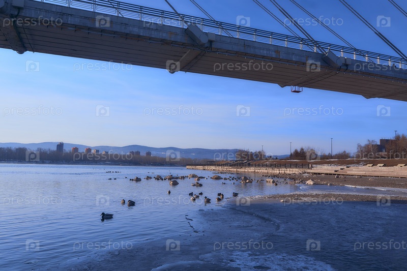 Енисей в центре Красноярска в яркий весенний день