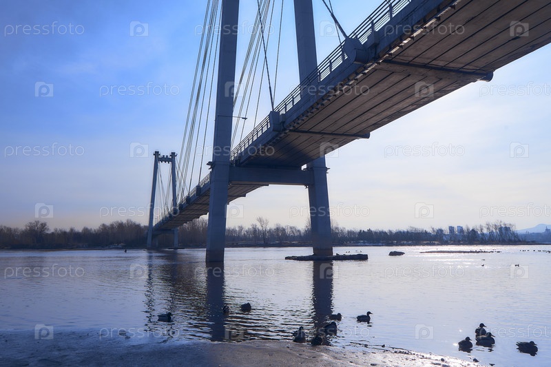 Енисей в центре Красноярска в яркий весенний день