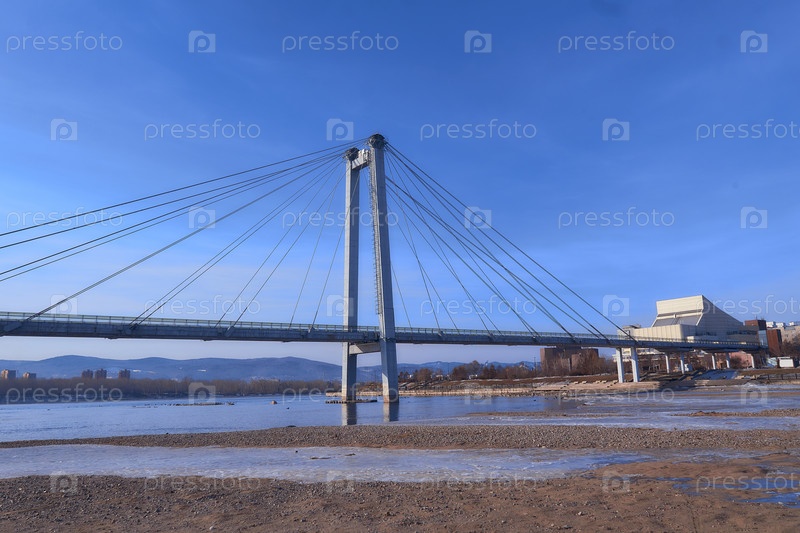 Енисей в центре Красноярска в яркий весенний день