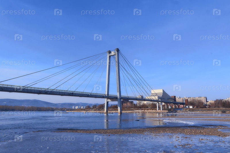 Енисей в центре Красноярска в яркий весенний день