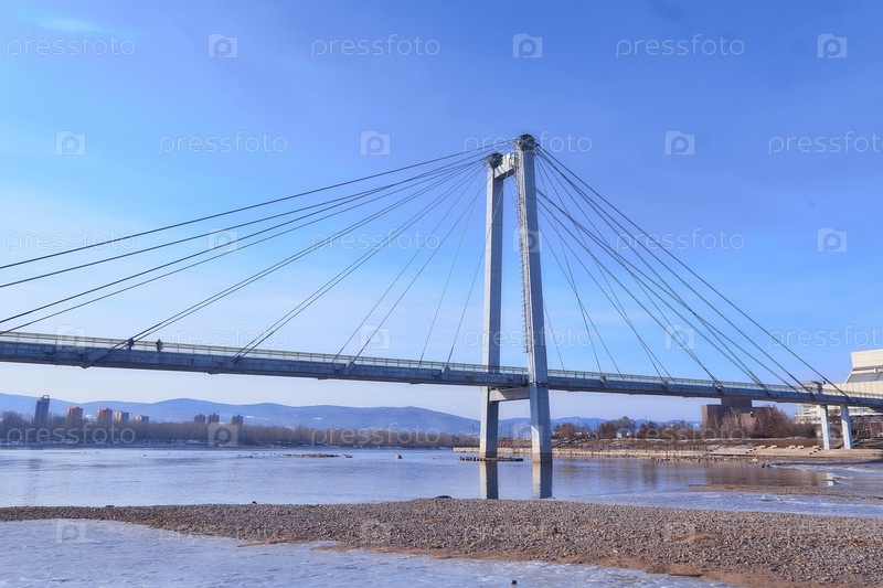 Енисей в центре Красноярска в яркий весенний день