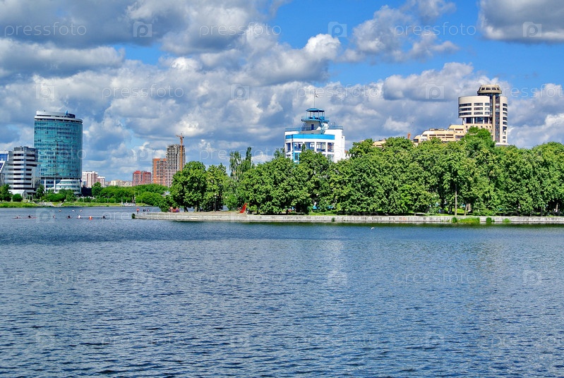 Вид на городской пруд. Летний Екатеринбург. Екатеринбург — четвертый по величине город России, центр Свердловской области