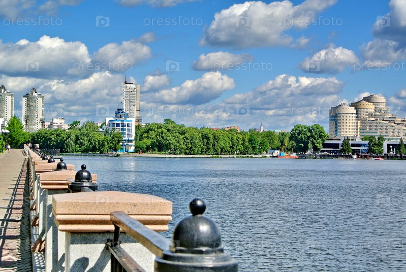 Панорама городского пруда. Летний Екатеринбург. Екатеринбург — четвертый по величине город России, центр Свердловской области