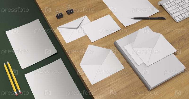 Пустые макеты почтовых конвертов, книги и брошюры для презентаций и портфолио дизайнеров