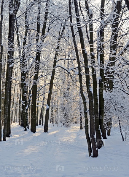 Морозное зимнее утро в лесу