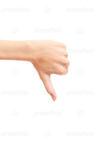 Рука показывает палец вниз, изолированные на белом фоне