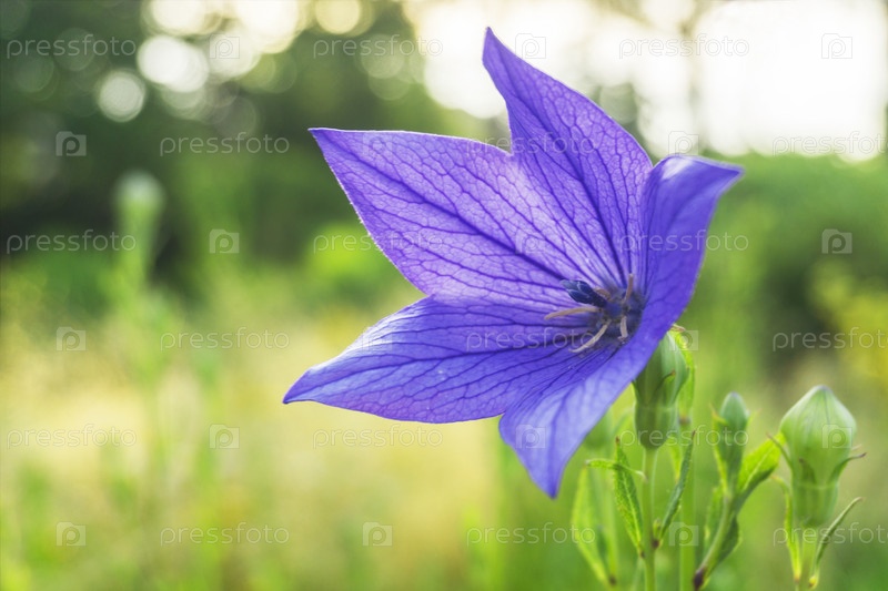 Яркий голубой цветочный колокольчик в летнем саду крупным планом