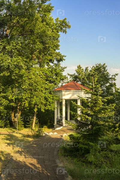 Красивая беседка, под большим дубом, солнечный летний день