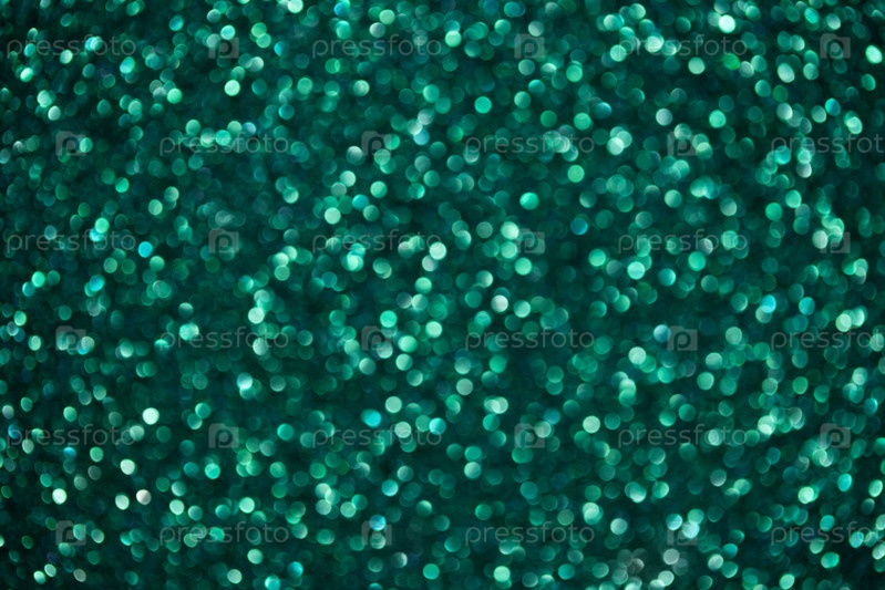Зеленый абстрактный фон с боке. Сверкающая блестящая текстура