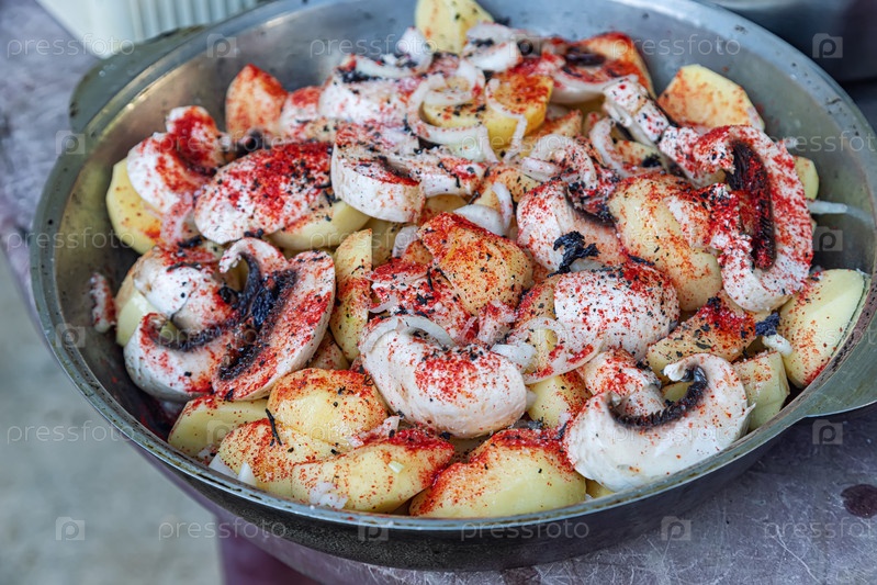 Специальное блюдо из рубленой свинины, овощей, грибов и приправ